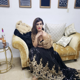 Este shoot era un estilo Old Hollywood Glam Vibes y la ropa en este caso fue una recopilación de vestidos de noche de Carmen Viluz, Rene Medina y unos vintage Minks que teníamos en mi casa.